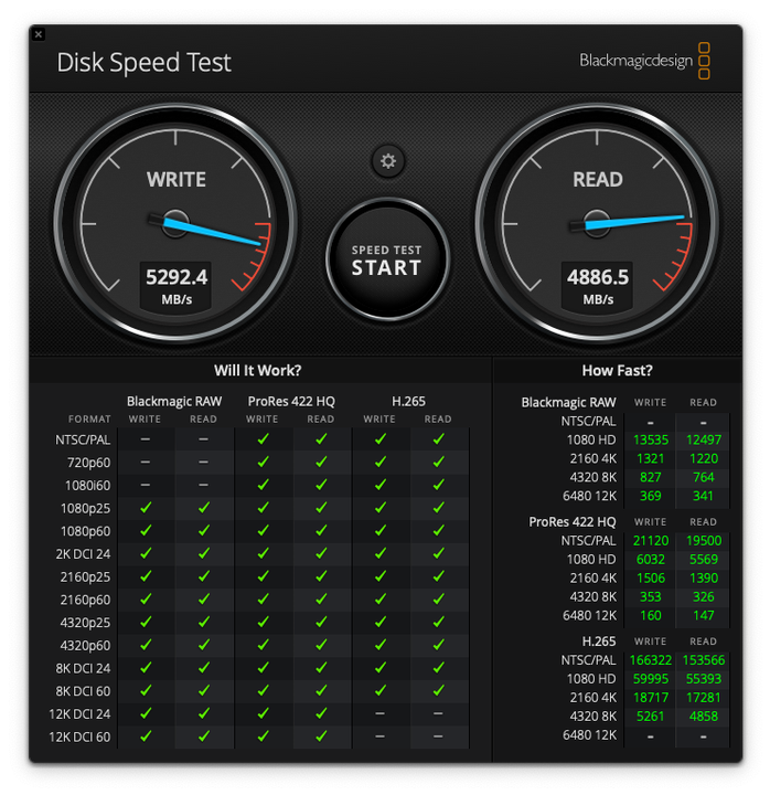 Blackmagic Disk Speed Test - Apple silicon ThunderBolt 5 - RAID 5