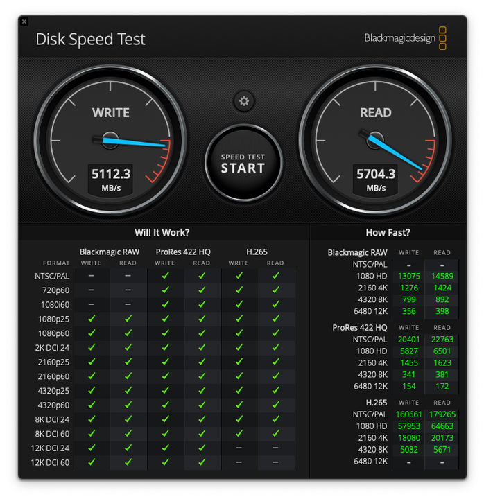 Blackmagic Disk Speed Test - Apple silicon ThunderBolt 5 - RAID 5